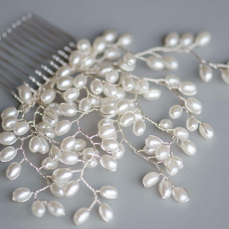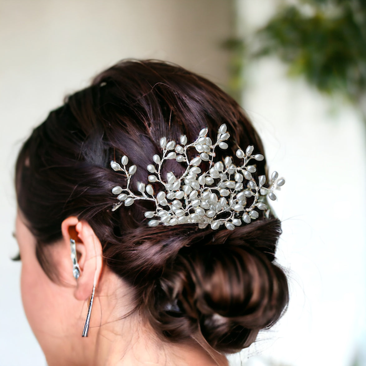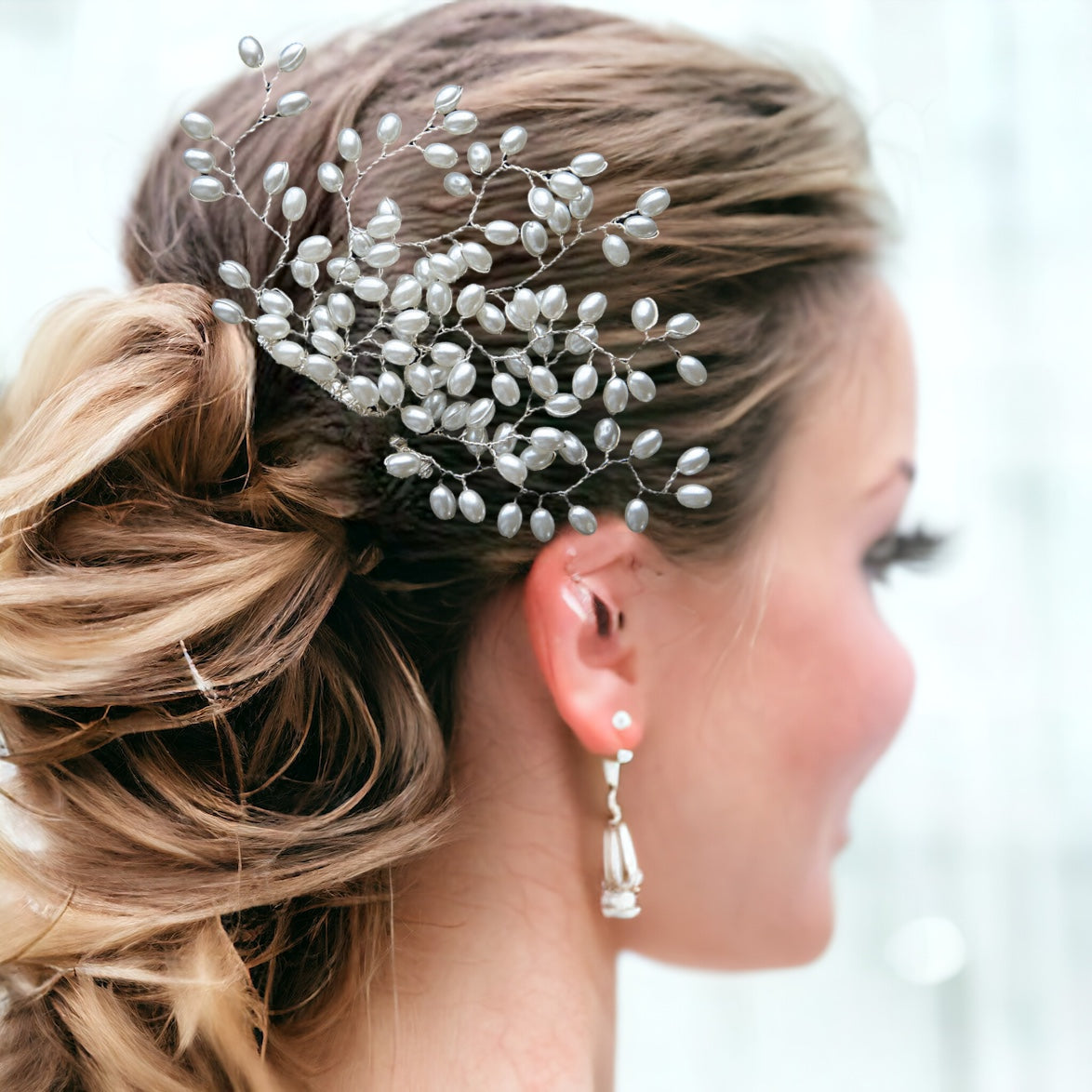 Introducing our Pearls Only Vine Headpiece, the perfect accessory for weddings, bridal parties, and bridesmaids. This exquisite headpiece is crafted exclusively from pearls, giving you the choice between simulated pearls and natural pearls. The simplicity and elegance of this design make it suitable for brides, mothers of the bride, and bridesmaids alike. Its versatility allows for effortless styling with various hairstyles, adding a touch of sophistication to any bridal ensemble.