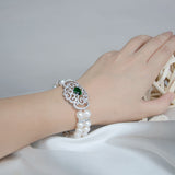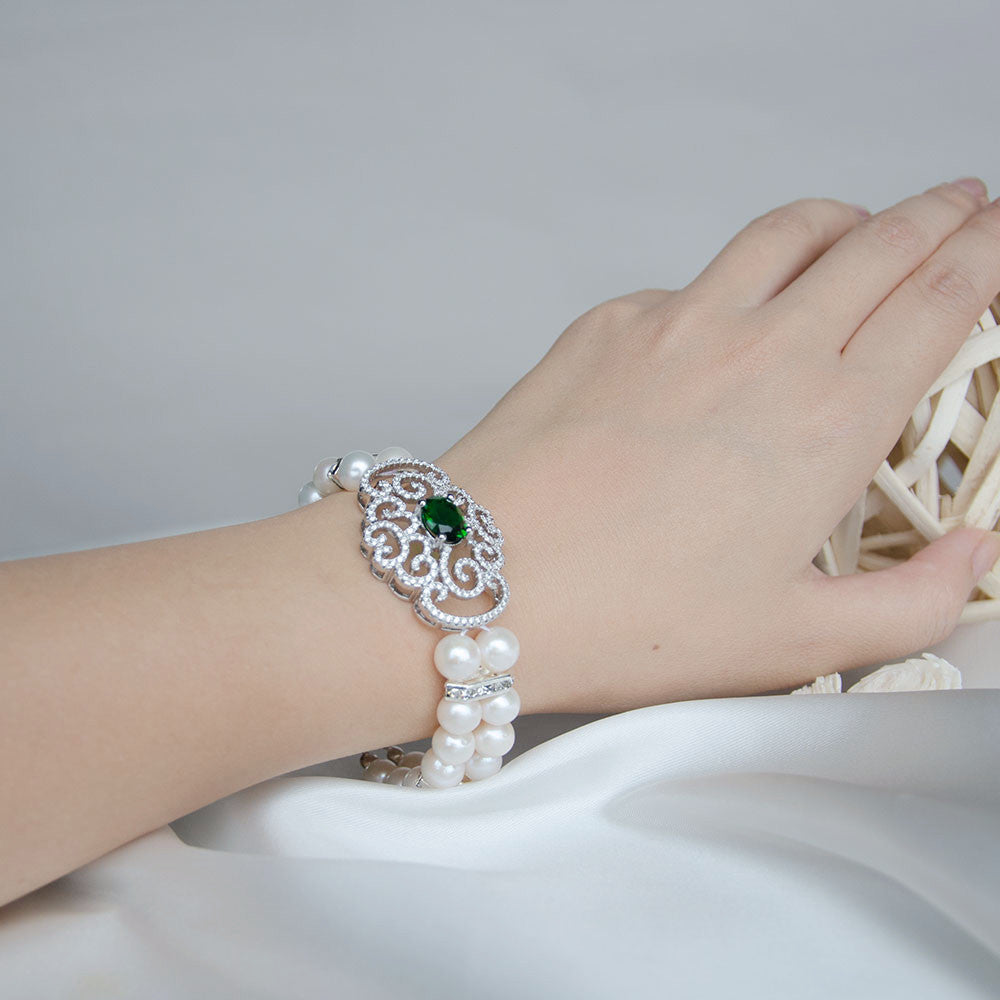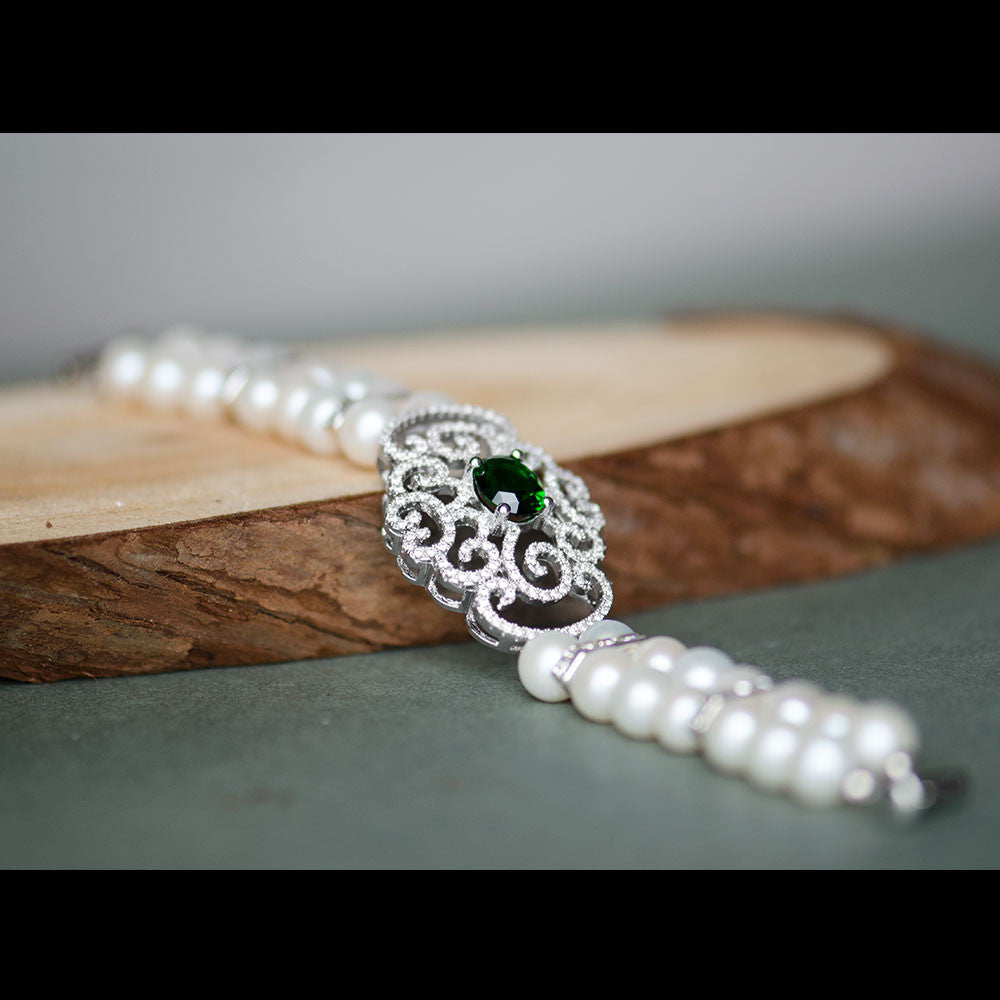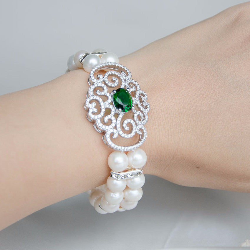 materials: 8mm AA+ natural freshwater near round pearls, AAA micro pave cubic zirconia connector, rhinestone connectors